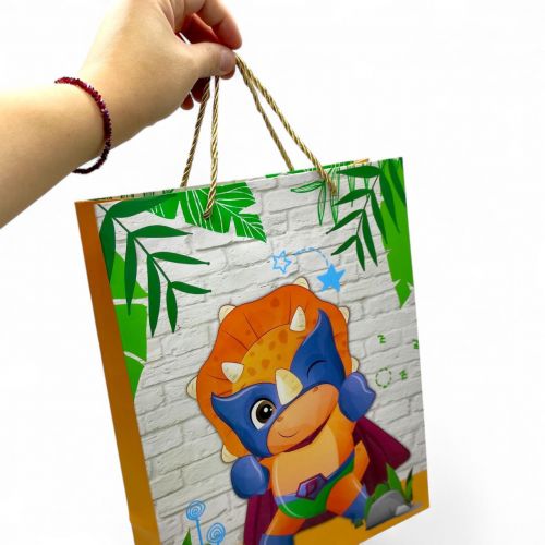Яскравий подарунковий пакунок буде хорошим доповненням до основного подарунку та створить незабутній настрій свята. Пакет картонний, досить великого розміру: 32х26х10 см. Прикрашений красивим принтом. Має зручні та досить міцні ручки-мотузочки. Зробіть свій подарунок неперевершеним із цим чудовим пакетом.