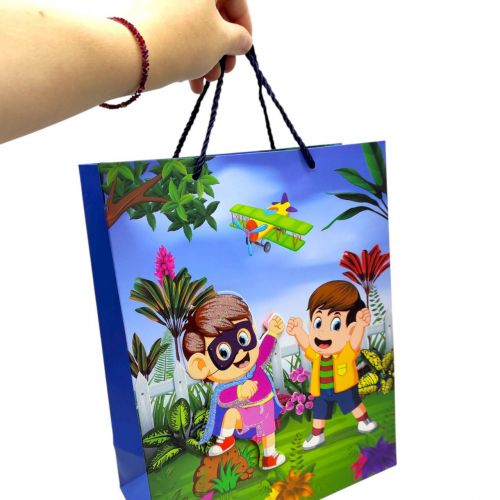 Яскравий подарунковий пакунок буде хорошим доповненням до основного подарунку та створить незабутній настрій свята. Пакет картонний, досить великого розміру: 32х26х12 см. Прикрашений красивим принтом. Має зручні та досить міцні ручки-мотузочки. Зробіть свій подарунок неперевершеним із цим чудовим пакетом.