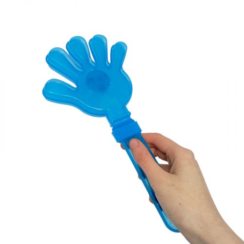 Кумедна світяшка у вигляді долоні-хлопавки. Тримай паличку, труси та спостерігай як дві руки бʼються одне об одного створюючи звук оплесків. На середній долоні присутня світяшка — щоб іграшка почала світитися достатньо нажати маленьку кнопку на ній. Виконано з якісних та безпечних матеріалів. Для дітей старше 3-х років.