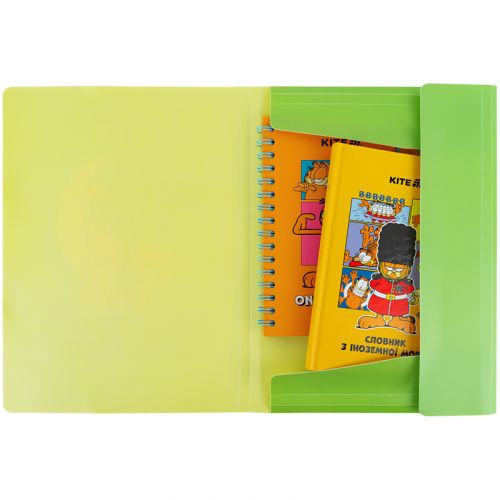 Папка на гумках A4, GF виконана з міцного матового пластику. Корінець і бічні клапани папки можуть розширюватися і звужуватися при необхідності на кілька рівнів (від 4 мм до 35 мм), адаптуючи папку під товщину вмісту і роблячи її місткою. Еластична гумка тримає папку щільно закритою.