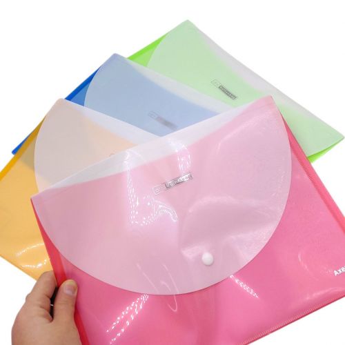 Пластикова папка на кнопці. Напівпрозора, виконана у двох кольорах. Формат папки: А4 (31х22.5 см) Призначена для зберігання та переміщення документів, ідеально підійде для зберігання зошитів. Виготовлена із якісних матеріалів. Різні кольори в асортименті.