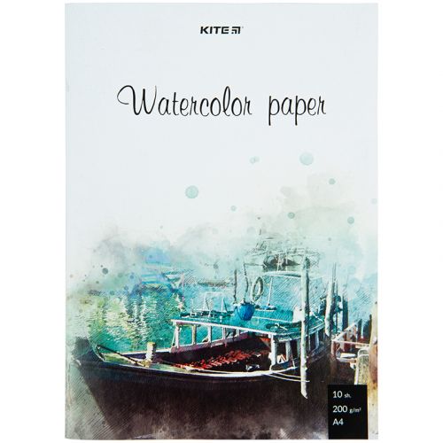 Акварельний папір Kite має текстуру з легким рельєфом, а зі зворотного боку – гладку поверхню. Папір відмінно вбирає воду, добре набирає в себе фарбу і утримує фарбуючий пігмент після висихання. Щільність 200 г/м2. Формат: А4. Для учнів художніх шкіл та професіоналів.