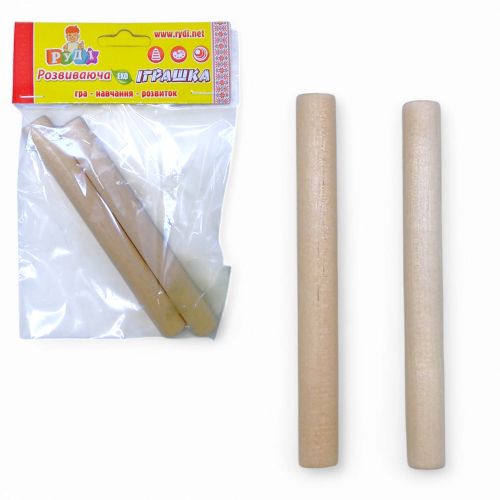 Деревʼяні палички клавес – це ударний музичний інструмент, який допомагає дітям розвивати почуття ритму, слух та координацію рухів. Це дві гладкі деревʼяні палички циліндричної форми, які видають дзвінкий і насичений звук при ударі однієї об іншу. Розмір – 14,5 х 1,5 см.