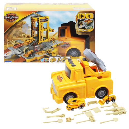 У складеному вигляді іграшка є машинкою (25х17х16 см), а розклавши стає незвичайною парковкою-треком. У такому вигляді має безліч ігрових функцій: парковка з механічним (піднімати вручну) ліфтом, підйомна платформа, платформа, що обертається, крутий трамплін. За допомогою спеціального лаунчера можна запускати машинки, Сам лаунчер оснащений світловими та звуковими ефектами. 2 металеві модельки, аксесуари та наклейки в комплекті.