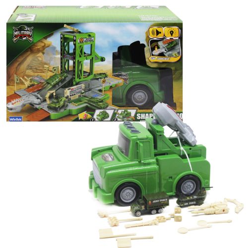 У складеному вигляді іграшка є машинкою (25х17х16 см), а розклавши стає незвичайною парковкою-треком. У такому вигляді має безліч ігрових функцій: парковка з механічним (піднімати вручну) ліфтом, підйомна платформа, платформа, що обертається, крутий трамплін. За допомогою спеціального лаунчера можна запускати машинки, Сам лаунчер оснащений світловими та звуковими ефектами. 2 металеві модельки, аксесуари та наклейки в комплекті.