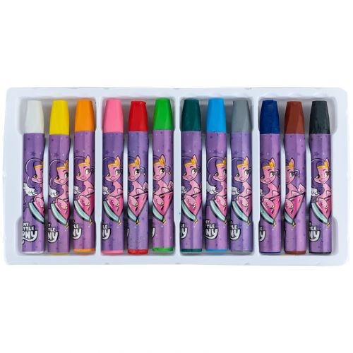 Масляна пастель зберігається в яскравій картонній упаковці із зображенням героїв My Little Pony. Палітра складається з 12 кольорів. Пастель яскрава та насичена, має однорідну структуру, не кришиться. Лінії лягають м’яко. Призначена для малювання на папері. Дитячу пастель приємно тримати в руках, вона має гладку текстуру, корпус захищений обгорткою. Пастель має нейтральний запах. Продукція пройшла гігієнічні дослідження і не містить шкідливих речовин. Рекомендовано дітям дошкільного та шкільного віку.