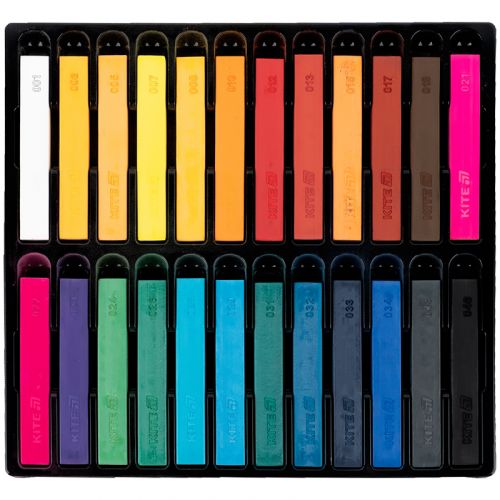 Суха пастель зберігається в яскравій картонній упаковці Kite Creative. Палітра складається з 24 кольорів. Пастель яскрава та насичена, має однорідну структуру, не кришиться. Лінії лягають м’яко. Призначена для малювання на папері, картоні. Пастель приємно тримати в руках, вона має гладку текстуру. Пастель має нейтральний запах. Продукція пройшла гігієнічні дослідження і не містить шкідливих речовин. Рекомендовано дітям шкільного віку, студентам