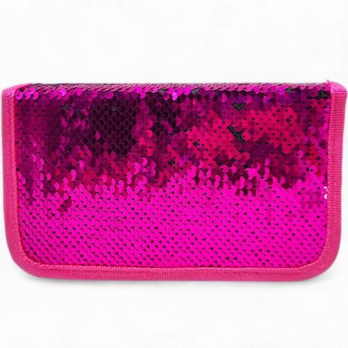 Яскравий, гарний пенал із блискучими паєтками. Має міцну картонну основу та закривається на блискавку. Є 1 містке відділення з безліччю кріплень для канцелярії. Міцні матеріали та надійна фурнітура, твердий каркас з яскравим малюнком. Розмір пеналу – 13х4х20 см.
