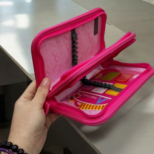 Яскравий, гарний пенал із блискучими паєтками. Має міцну картонну основу та закривається на блискавку. Є 2 місткі відділення з безліччю кріплень для канцелярії. Міцні матеріали та надійна фурнітура, твердий каркас з яскравим малюнком. Розмір пеналу – 19х4,5х12 см.