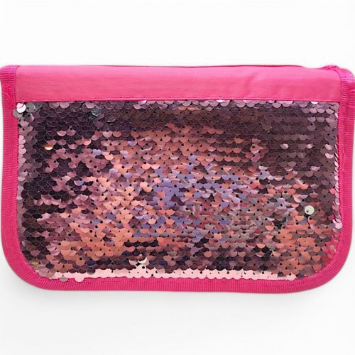 Яскравий, гарний пенал із блискучими паєтками. Має міцну картонну основу та закривається на блискавку. Є 3 місткі відділення з безліччю кріплень для канцелярії. Міцні матеріали та надійна фурнітура, твердий каркас з яскравим малюнком. Розмір пеналу – 19х6х12 см.