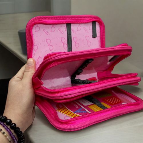Яскравий, гарний пенал із блискучими паєтками. Має міцну картонну основу та закривається на блискавку. Є 3 місткі відділення з безліччю кріплень для канцелярії. Міцні матеріали та надійна фурнітура, твердий каркас з яскравим малюнком. Розмір пеналу – 19х6х12 см.