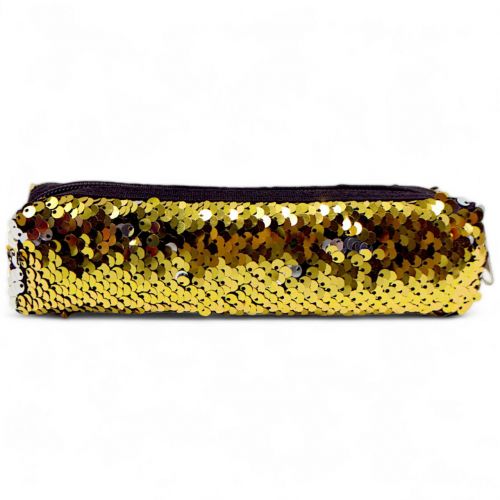 Компактний пенал в оригінальному дизайні. Пенал виконаний з міцного та приємного на дотик матеріалу. Прикрашений яскравими паєтками. Є одне відділення, яке закривається на блискавку. На виробі міцні шви та надійна фурнітура. Розмір: 19х5х4,5 см.