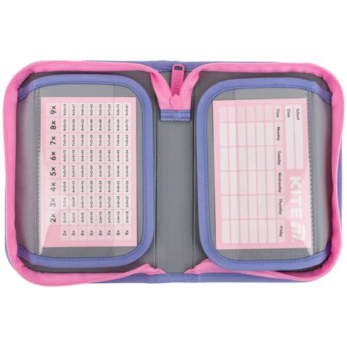 1 відділення, 2 відвороти, резинки для фіксації канцелярії, розклад, таблиця множення, без наповнення, декор: голографічна нашивка