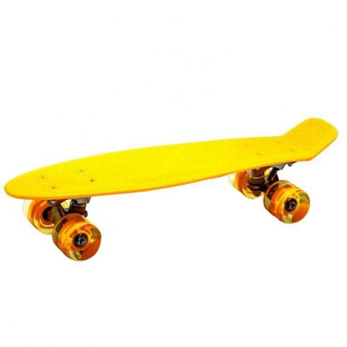 Пенні Борд. Легка дека зроблена з міцного формованого пластика. Підвіска скейта з міцного, але легкого алюмінію. Колеса PU, зі світлом, d = 6 см. Максимальне навантаження до 70 кг.