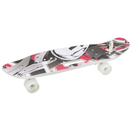 Пенні борд з яскравим, цікавим малюнком. Легка дека зроблена з міцного формованого пластика. Довжина деки – 65 см., Ширина – 17 см. Колеса PU, зі світлом, d = 6 см. Для зручного переміщення є ручка. Максимальне навантаження 70-80 кг.