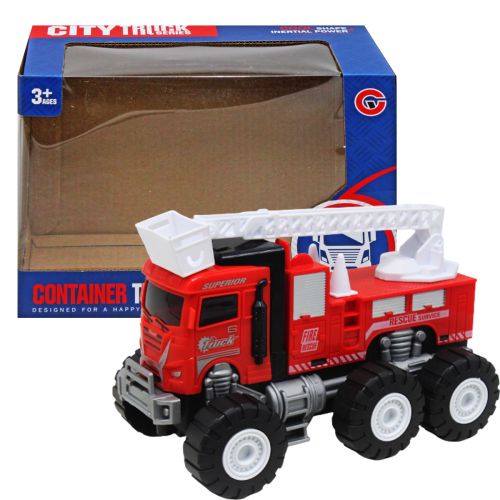 Машинка у вигляді пожежної машини. 3 пари коліс. Діаметр колеса – 5 см. Машина інерційна, має рухомі деталі. Яскрава та легка машинка виготовлена з безпечного пластику та має прекрасні деталі, що роблять її реалістичною та привабливою для дітей. Розмір – 21 х 11 х 12 см