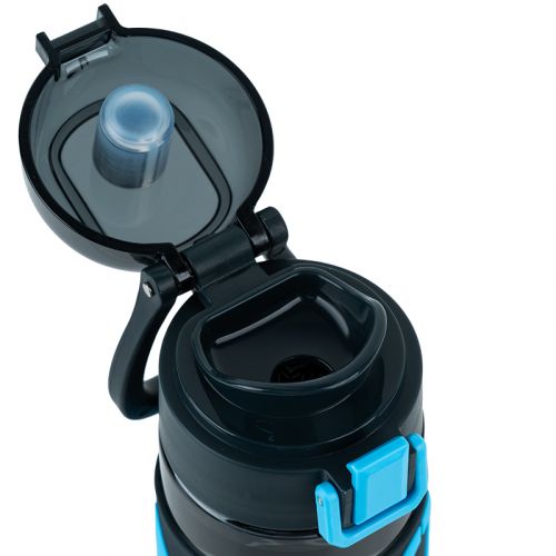 Пляшечка для води виготовлена з тритану. Тритан – надійний, міцний, безпечний пластик без запаху та смаку. Особливості: • об’єм 680 мл — оптимальний для активного дня; • безпечний тритан, без BPA; • герметична кришка з кнопкою відкривання; • зручна силіконова вставка-тримач — не ковзає в руці; • пластикова ручка — для зручного перенесення; • лаконічний дизайн із написом — виглядає круто і дарує настрій