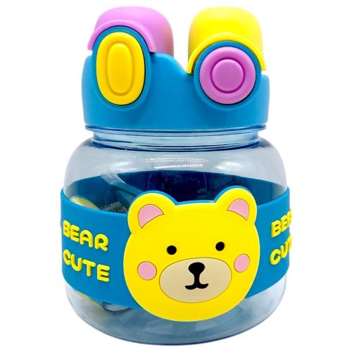 Пляшка для води 1000 мл, пластикова, ремінець, трубочка, шийка, в пакеті (БЛАКИТНА)
