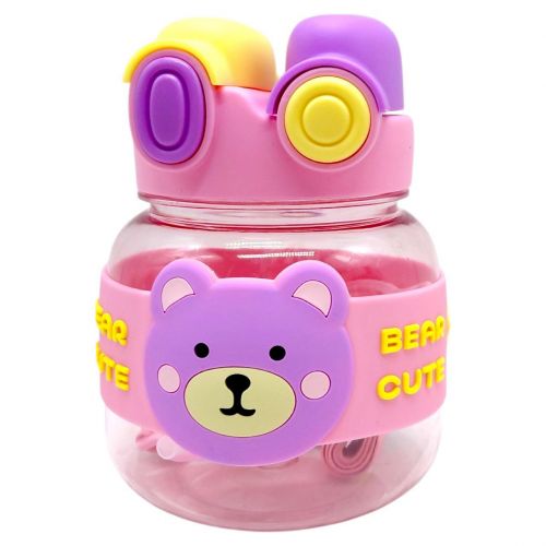Пляшка для води 1000 мл, пластикова, ремінець, трубочка, шийка, в пакеті (РОЖЕВА)