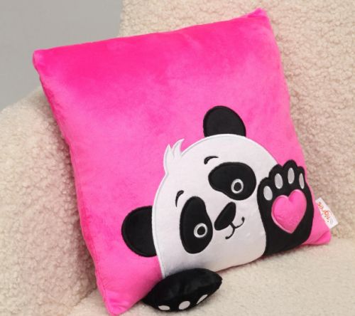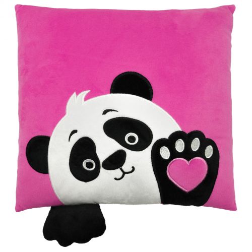 Яскрава рожева подушка із зображенням милої панди та декоративним елементом у вигляді мʼякої текстильної лапки. Виконана з якісних та дуже приємних на дотик матеріалів. Буде чудовим подарунком та прикрасою інтерʼєру. Розмір: 33х33х10 см. Виготовлено в Україні.