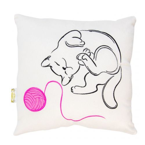 Подушка “Котик”. Яскрава двоколірна подушечка із зображенням котика з клубочком. Дуже барвиста і приємна на дотик. Склад: 100% поліестер. Розмір подушки: 32 х 33 см.