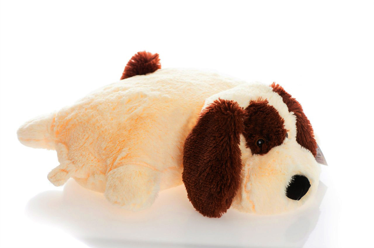 Подушка-іграшка собака Кулька розчулює дорослих і радує малюків. Вона ніжного персикового кольору і ідеально підходить для будь-якого інтер’єру. Іграшка зроблена з антиалергенного наповнювача холлофайбера та штучного хутра трави. Рекомендується дітям віком від трьох років. Розмір 45 см (вимірюється із головою). Купуючи її, ви інвестуєте у здоровий та міцний сон своєї дитини. До основних переваг подушки-іграшки Шарик відносяться: незвичайний дизайн – виріб без проблем перетворюється з подушки на іграшку; безпека – матеріали гіпоалергенні, не викликають проблем зі здоров’ям; міцність – подушкою можна користуватися тривалий час і не боятися її деформації; доступна вартість – сім’я з будь-яким достатком зможе придбати виріб для свого улюбленого малюка.