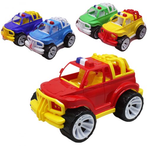 Яскрава пластикова машинка позашляховик з великими колесами. Має водійське місце і пасажирське. Виготовлена з якісного пластика. Різні види в асортименті.