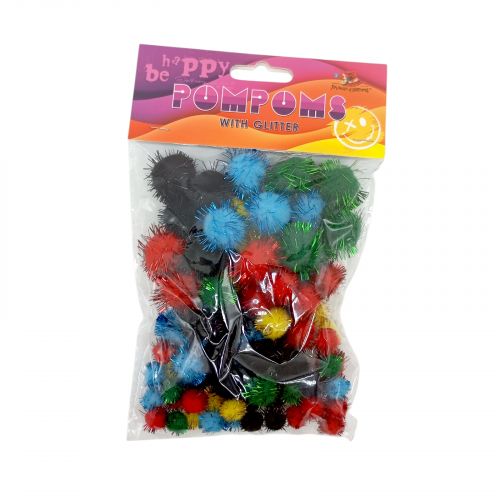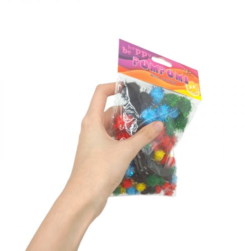 Помпони блискучі, різні розміри,5 кольорів,80шт