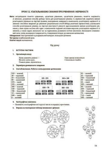 Посібник містить орієнтовне календарно-тематичне планування та розробки уроків математики у 4-му класі Нової української школи. Конспекти уроків, різноманітні за формою проведення, побудовано з урахуванням основних положень Концепції “Нова українська школа”, на засадах компетентнісного, діяльнісного підходів, з використання елементів інтеграції, інноваційних та здоровʼязбережувальних технологій, інтерактивних методик та прийомів навчання, сучасного обладнання як складової нового освітнього середовища.