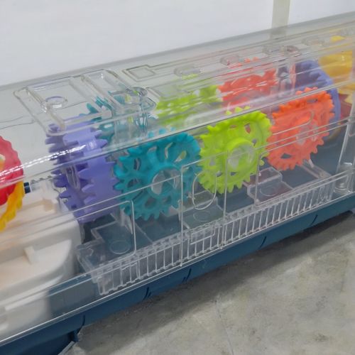 Іграшковий поїзд на батарейках – захоплива розвага для дітей! Їздить у різні боки, радуючи малюків кольоровими шестренями, що обертаються, і яскравим підсвічуванням. Реалістичний звукові ефекти. Відмінний вибір для веселої гри та розвитку моторики. Працює від 3-х батарейок АА (немає в комплекті).