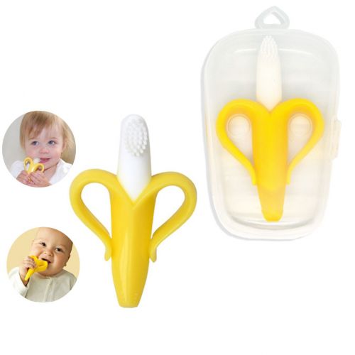 Прорізувач для зубів у вигляді банана. Стилізований під зубну щітку з м’якими силіконовими щетинками. Має зручні для дитячої долоньки ручки. М’яко масажує ясна малюка, полегшує дискомфортні явища в період прорізування зубів. Виготовлений з безпечного силікону.
