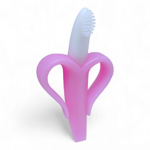Прорізувач для зубів у вигляді банана. Стилізований під зубну щітку з мʼякими силіконовими щетинками. Має зручні для дитячої долоньки ручки. Мʼяко масажує ясна малюка, полегшує дискомфорт в період прорізування зубів. Виготовлений з безпечного силікону. У прозорому футлярі.