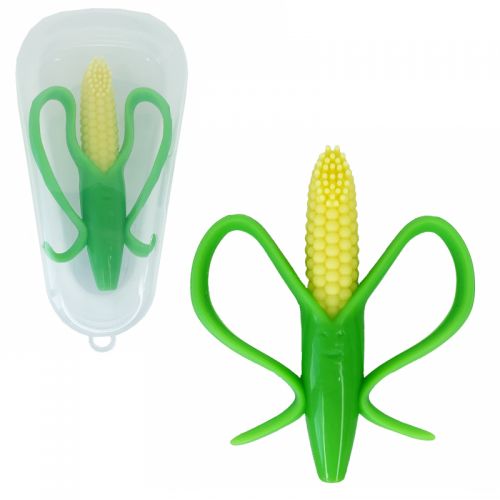 Прорізувач для зубів у вигляді кукурудзи. Стилізований під зубну щітку з м’якими силіконовими щетинками. Має зручні для дитячої долоньки ручки. М’яко масажує ясна малюка, полегшує дискомфортні явища в період прорізування зубів. Виготовлений з безпечного силікону.