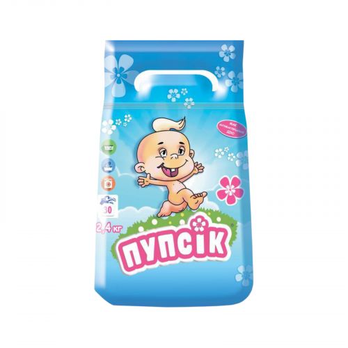 Пральний порошок Пупсик з перших днів життя. Продукція Пупсік призначена для найменших дітей. Порошок Пупсік, до складу якого не входять нафтопродукти та хімічні відбілювачі, не подразнює шкіру, не викликає алергії. До складу цього прального порошку входять тільки натуральні природні інгредієнти. Цей порошок — це чудовий засіб для відпирання найважче вивідних плям і будь-яких забруднень. Він абсолютно безпечний для прання білизни новонароджених. Зберігає якість тканини та колір білизни упродовж багаторазового використання, не деформує одяг. Призначений для автоматичних пральних машин та ручного прання.