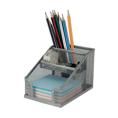 Порядок на столі – порядок у справах. Підставка-органайзер Axent – ще один офісний аксесуар, щоб підтримувати порядок на робочому столі – дозволяє естетично і зручно розмістити паперові блоки і канцелярське приладдя. Складається з 3-х відділень. Підставка-органайзер з металевої сітки органічно і “невагомо” виглядає на будь-якому робочому столі. Міцний матеріал, якісне фарбування і обробка країв, суцільнометалеве дно забезпечують акуратний зовнішній вигляд протягом довгого часу. Підставка-органайзер з металевої сітки може стати доповненням до інших настільних аксесуарів Axent з цієї серії.