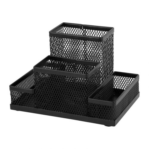 Порядок на столі – порядок у справах. Підставка-органайзер Axent – ще один офісний аксесуар, щоб підтримувати порядок на робочому столі – дозволяє естетично і зручно розмістити паперові блоки і канцелярське приладдя. Складається з 4-х відділень. Підставка-органайзер з металевої сітки органічно і “невагомо” виглядає на будь-якому робочому столі. Міцний матеріал, якісне фарбування і обробка країв, суцільнометалеве дно забезпечують акуратний зовнішній вигляд протягом довгого часу. Підставка-органайзер з металевої сітки може стати доповненням до інших настільних аксесуарів Axent з цієї серії.
