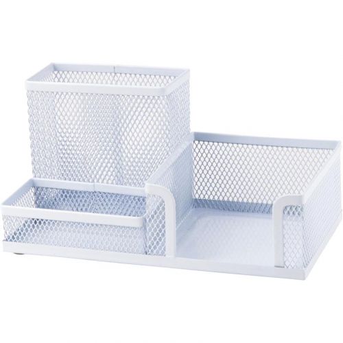 Порядок на столі – порядок у справах. Підставка-органайзер Axent – ще один офісний аксесуар, щоб підтримувати порядок на робочому столі – дозволяє естетично і зручно розмістити паперові блоки і канцелярське приладдя. Складається з 3-х відділень. Підставка-органайзер з металевої сітки органічно і “невагомо” виглядає на будь-якому робочому столі. Міцний матеріал, якісне фарбування і обробка країв, суцільнометалеве дно забезпечують акуратний зовнішній вигляд протягом довгого часу. Підставка-органайзер з металевої сітки може стати доповненням до інших настільних аксесуарів Axent з цієї серії.
