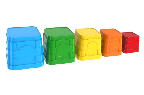 Класична пірамідка, що складається з 5 елементов.Блокі пірамідки можна використовувати для створення пасочек або пісочних замків, так як межі блоків виконані в стилі середньовічних замків.