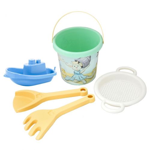 Комплектація: Відро, лопатка, грали, сито, кораблик