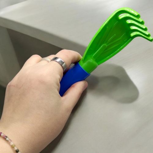 Пісочний набір “Лопатка та граблі” зелена+синя
