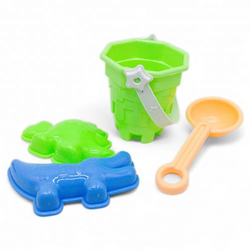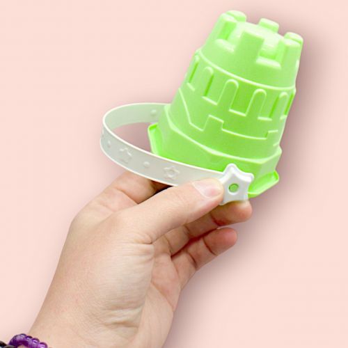 Маленький пісочний набір для дітей включає міні відерце у вигляді башточки, лопатку та чотири пасочки. Цей яскравий та міцний комплект ідеально підходить для ігор на пляжі або в пісочниці, розвиваючи уяву та дрібну моторику дитини. Розмір відерця – 8,5 см.