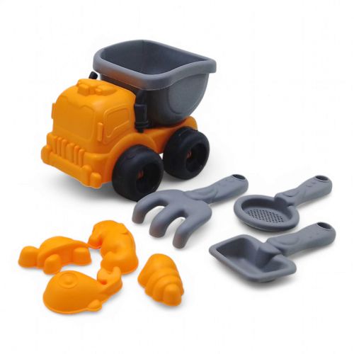 Комплектація: Машинка самоскид, лопатка, граблі, сито, 4 формочки