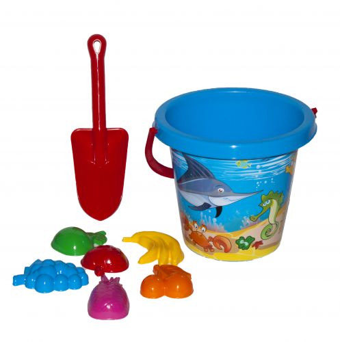 Комплектація: Відро, совок, формочки – 6 шт.