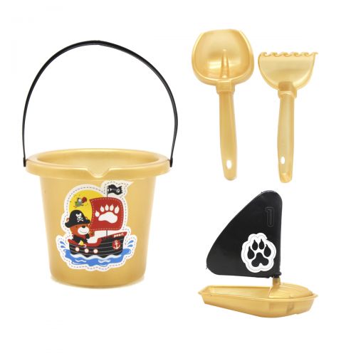 У пісочний набір входить: відро – 12 х 10 х 12 см (без урахування ручок), лопатка (17 см), граблі (15 см) і невеликий кораблик з піратськими вітрилами. (10 х 6,4 х 11 см). Підійде для гри в піску і біля води, і зробить проведений час корисним і цікавим.
