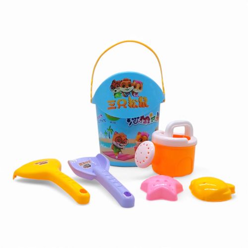 Комплектація: Відерце, сито, лійка, лопатка, граблі та дві формочки
