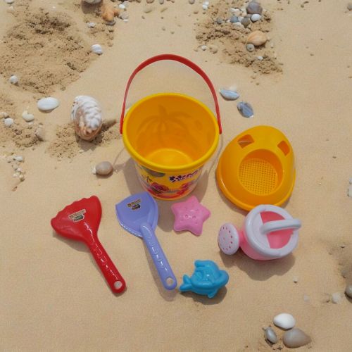 Комплектація: Відерце, сито, лійка, лопатка, граблі та дві формочки
