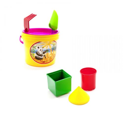 Яскравий піщаний набір. У комплекті: відерце з ручкою (15 х 19 см), ситечко, лопатка, грабельки та 3 пасочки у вигляді геометричних форм. Набір підійде для гри в пісочниці, на пляжі чи вдома. Неодмінно порадує дитину та принесе море позитивних емоцій. Розмір відерця: 15х19х19 см.