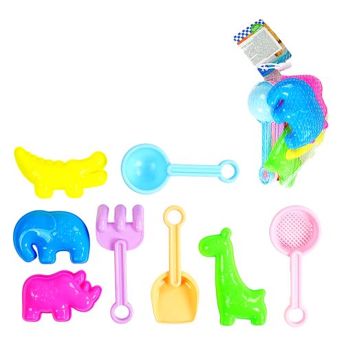 Яскравий пластиковий пісочний набір буде хорошим подарунком малюку в літню пору. У комплекті є: лопатка, грабельки, ситечко, черпачок та 4 пасочки. Такий набір чудово підійде для ігор із піском чи водою. Укомплектовано все в сітку. Виготовлено з якісного та безпечного пластику. Для дітей старше 3-х років.