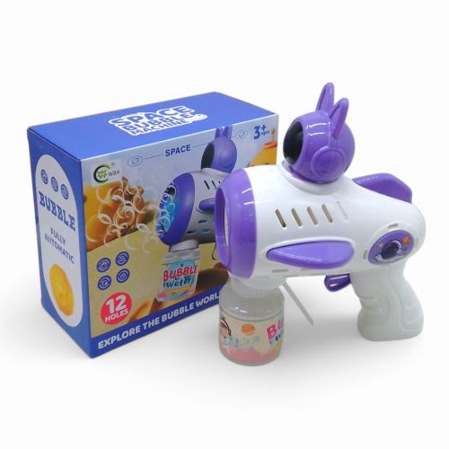 Пістолет для пускання мильних бульбашок — яскрава іграшка, що подарує море радості! Просто прикрути баночку з розчином до корпусу, натисни на курок — і навколо закружляє купа бульбашок. Іграшка оснащена підсвіткою, що робить гру ще цікавішою. Чудовий варіант для прогулянок на свіжому повітрі чи веселих вечірок! Працює від 4-х батарейок АА (немає в комплекті).