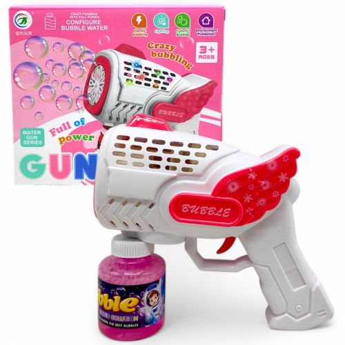 Пістолет з мильними бульбашками – це весела та яскрава розвага для дітей! Просто прикрутіть баночку з мильним розчином до пістолета, натисніть на кнопку – і він випустить велику кількість бульбашок, що сяють у повітрі. Оснащений яскравим підсвічуванням, що робить гру ще більш цыкавою. Працює від 4-х батарейок АА (немає в комплекті).